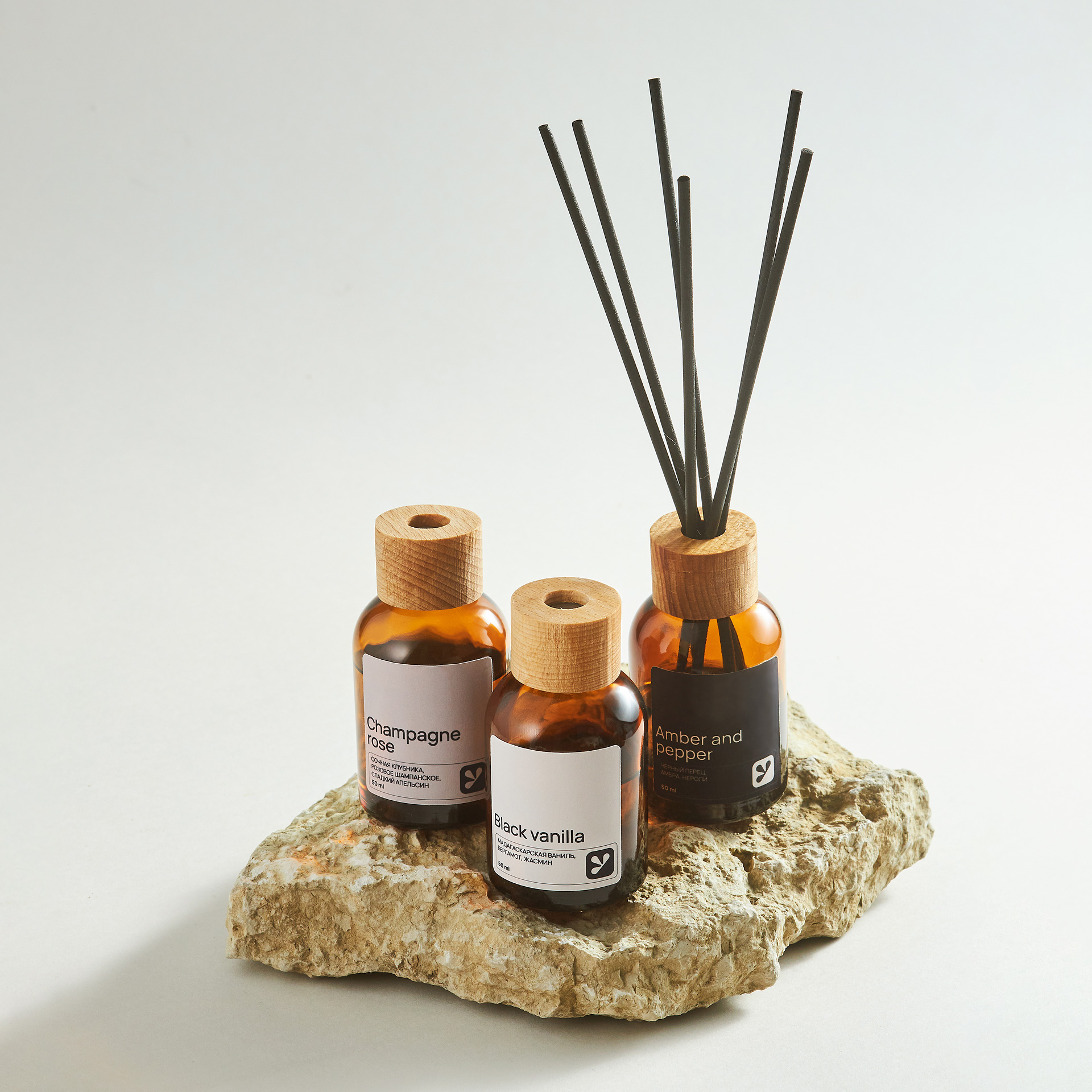 Диффузоры от «Уютности» изготовлены из премиальных французских отдушек с высоким содержанием ароматических компонентов, эффективны для помещений площадью до 40 м². Набор упакован в стильный прочный картонный тубус.