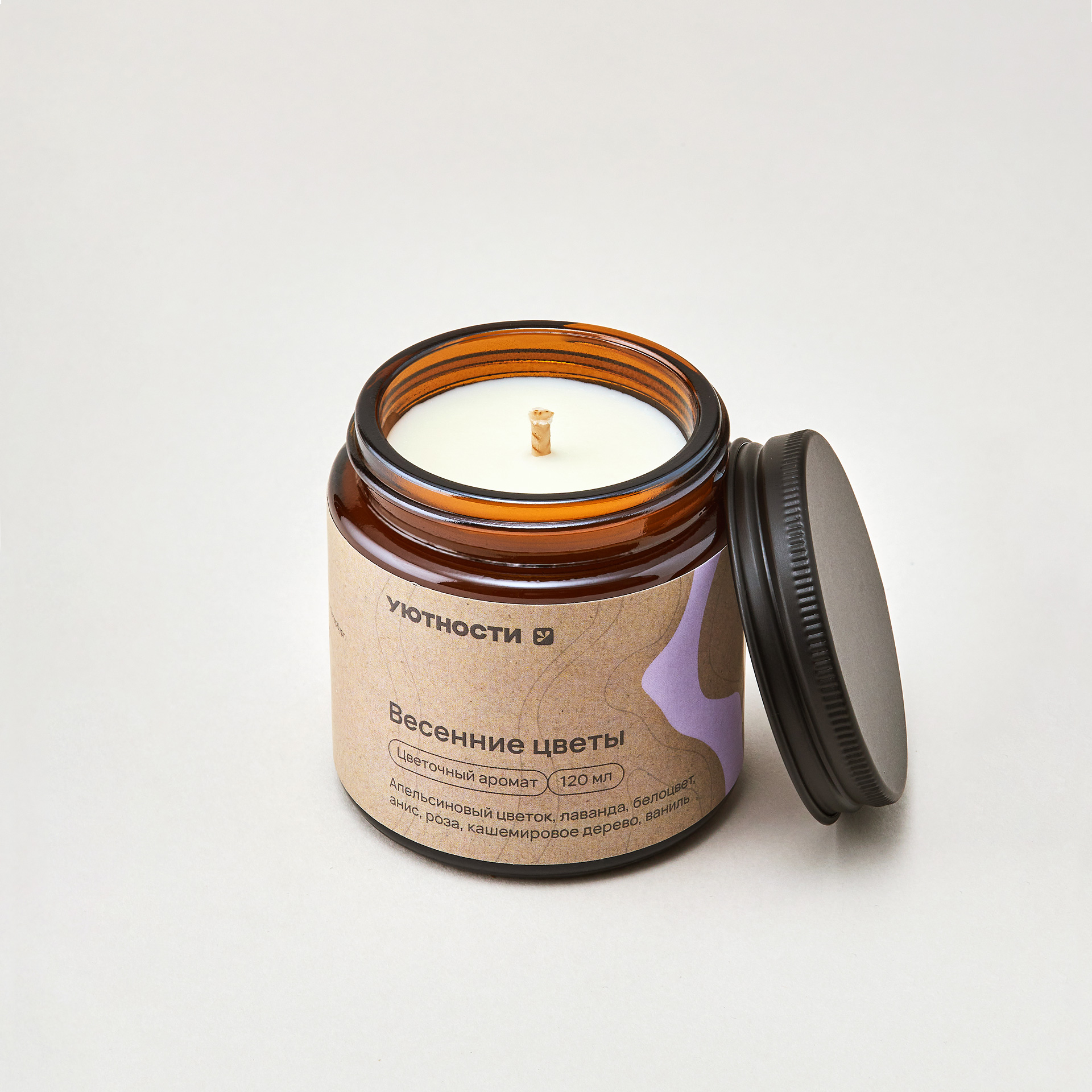 Зажженная свеча открывает перед вами ароматное утро в цветущем саду.  Сочные ноты апельсинового цветка в сочетании с прохладной лавандой мгновенно обволакивают нежностью. Сердце композиции раскрывается белоцветом и анисом, добавляя игривую красочность. Завершают эту симфонию роза и тепло кашемирового дерева, окутанные тонкими акцентами ванили. Этот аромат - свежий глоток весны, пробуждающий чувства и вдохновение.