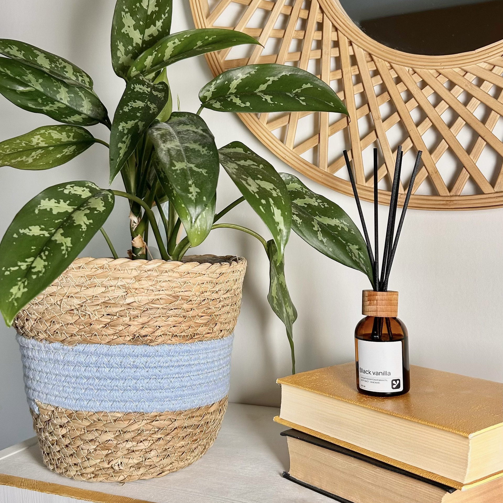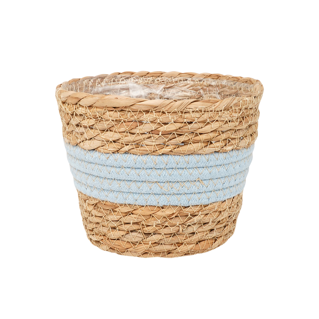 Кашпо плетеное 21,5х21,5х18,8см натуральный голубой