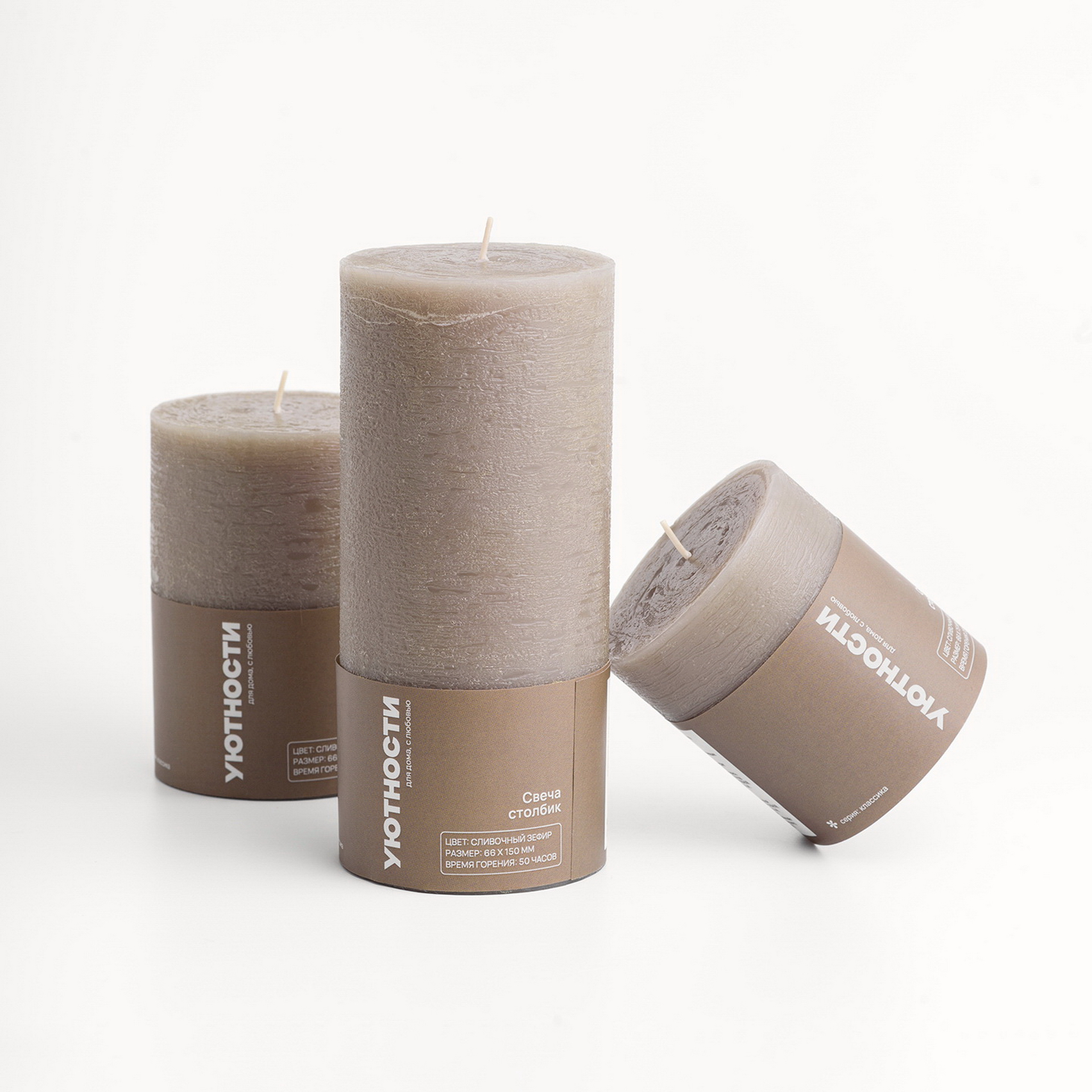 Свеча столбик 150мм Сливочный зефир