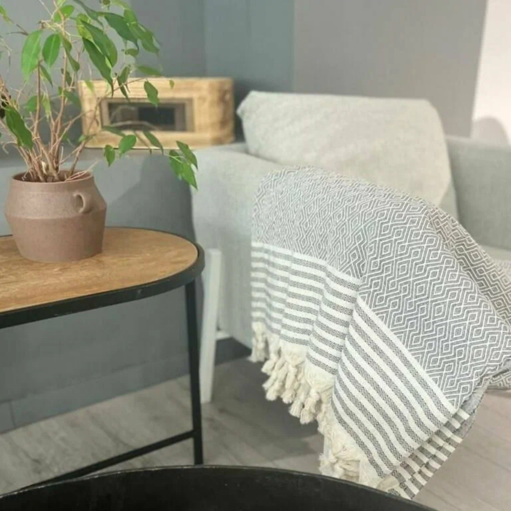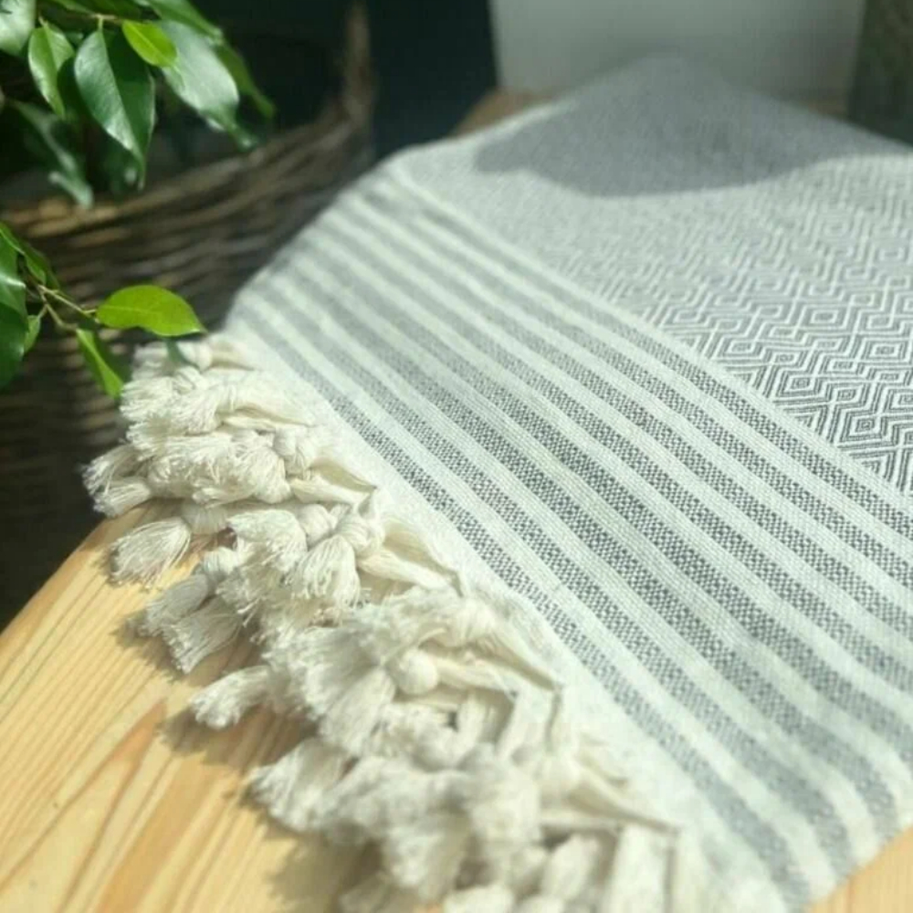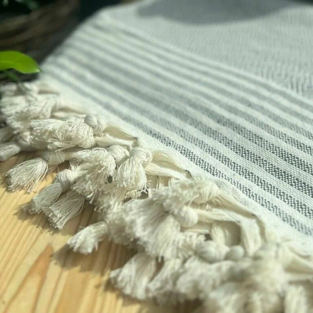 Техника пештемаль: Турецкое плетение обеспечивает легкость, износостойкость и идеальную структуру полотна, которое не теряет форму даже после долгого использования.