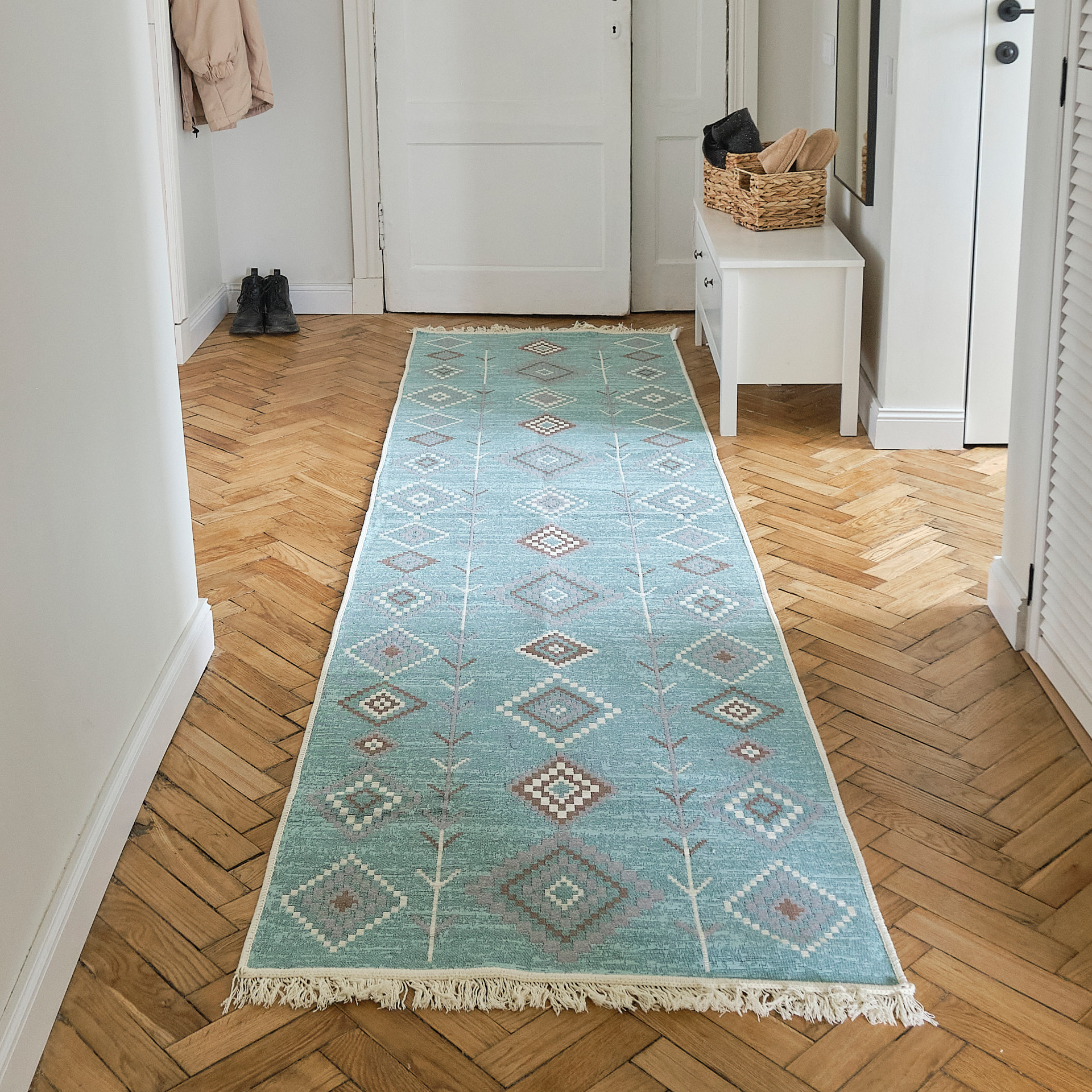 Двусторонний ковер килим «Мармарис» — стильный и мягкий турецкий ковер. Его состав — 65% хлопок, 30% полиэстер и 5% вискоза. Эти материалы абсолютно безопасны для здоровья. Размер ковра: 80×300 см. Универсальный вариант для спальни, гостиной и прихожей, можно использовать с обеих сторон. Его традиционные узоры и мягкие природные оттенки напоминают живописные пейзажи турецкого побережья. Он будет настоящим украшением вашего интерьера.
