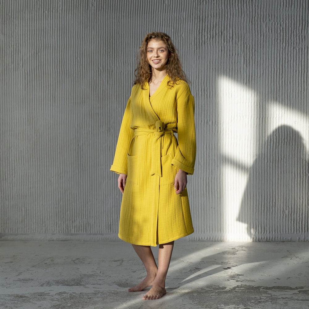 Халат-накидка из четырехслойного муслина с поясом. Идеально подойдет для чувствительной кожи. Муслин хорошо впитывает влагу, быстро сохнет. Материал имеет высокую износостойкость. Состав: 100% хлопок. Производство: Россия.