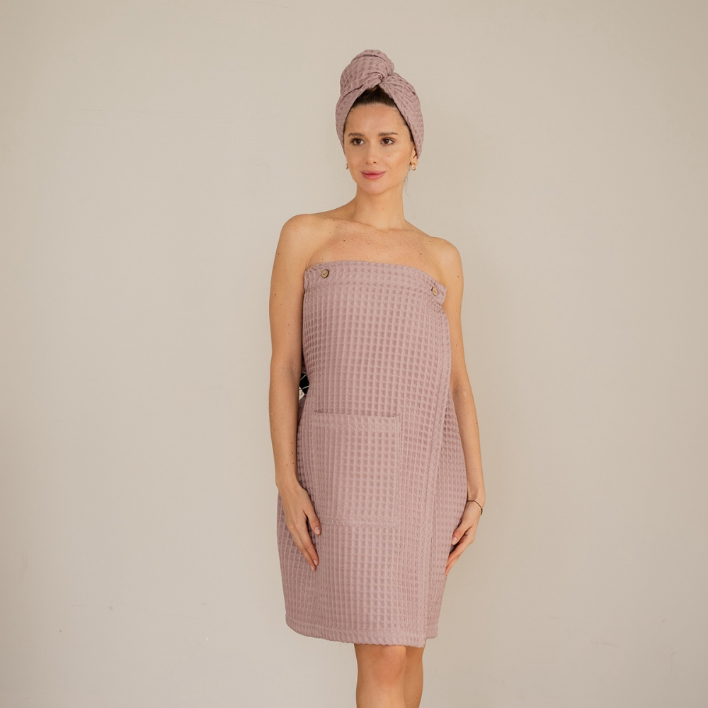 Банный килт из натурального вафельного полотна. Надежно фиксируется на теле кокосовыми пуговицами. Килт быстро высыхает, подходит для использования в хамаме, бане, сауне. Простой и уютный, это идеальный выбор для вашей ванной комнаты. Дополните килт уютными домашними тапочками, чалмой и косметичкой для банных принадлежностей из нашей коллекции "Тори". Состав - 100% Хлопок.