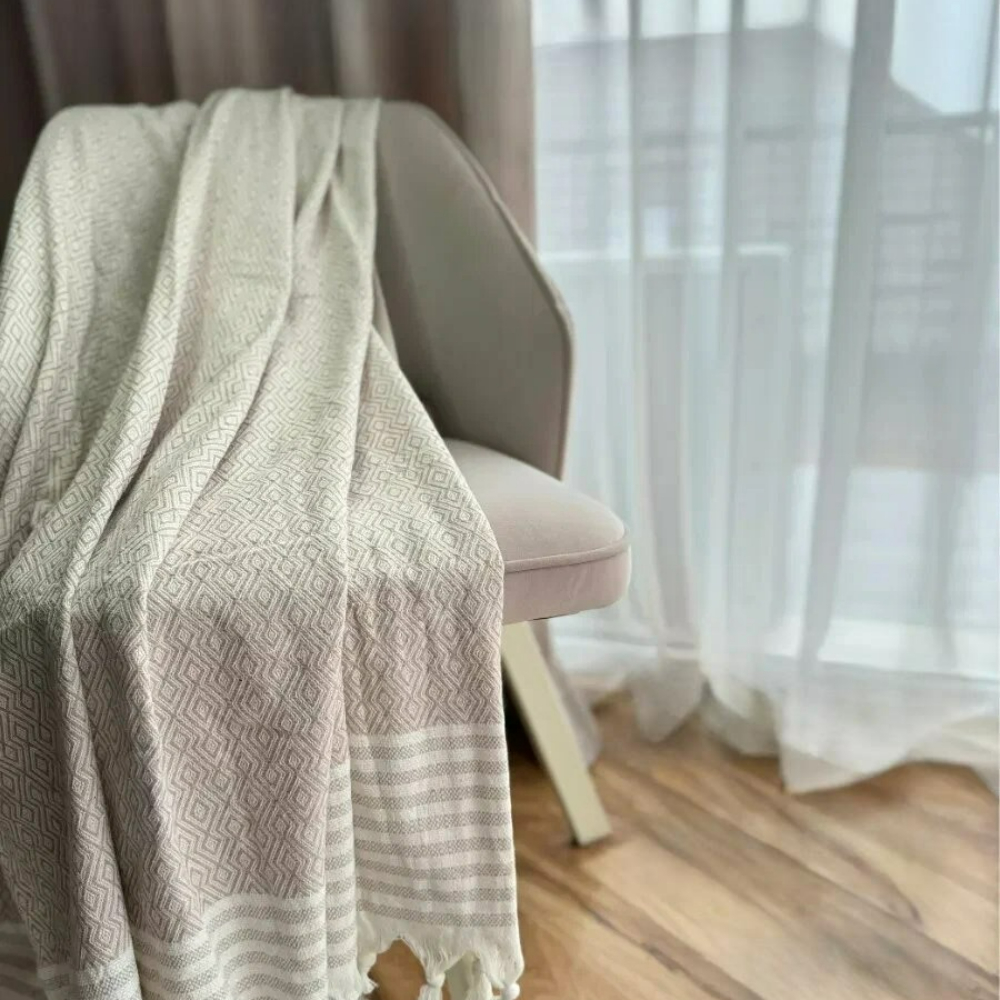Произведённый в Турции, этот плед — воплощение качества и природной эстетики. Подарите себе или близким тепло натуральных материалов и изысканность геометрических линий!