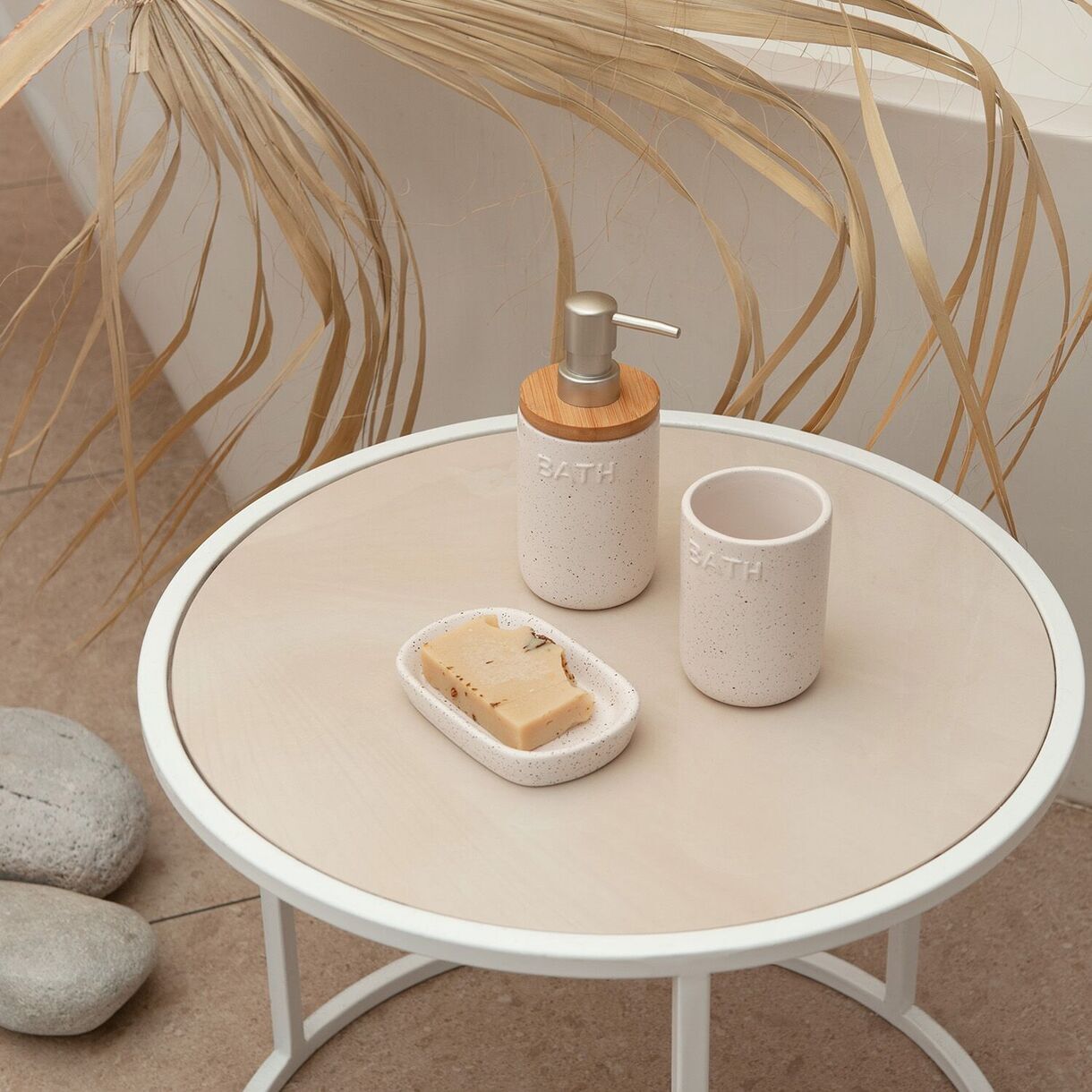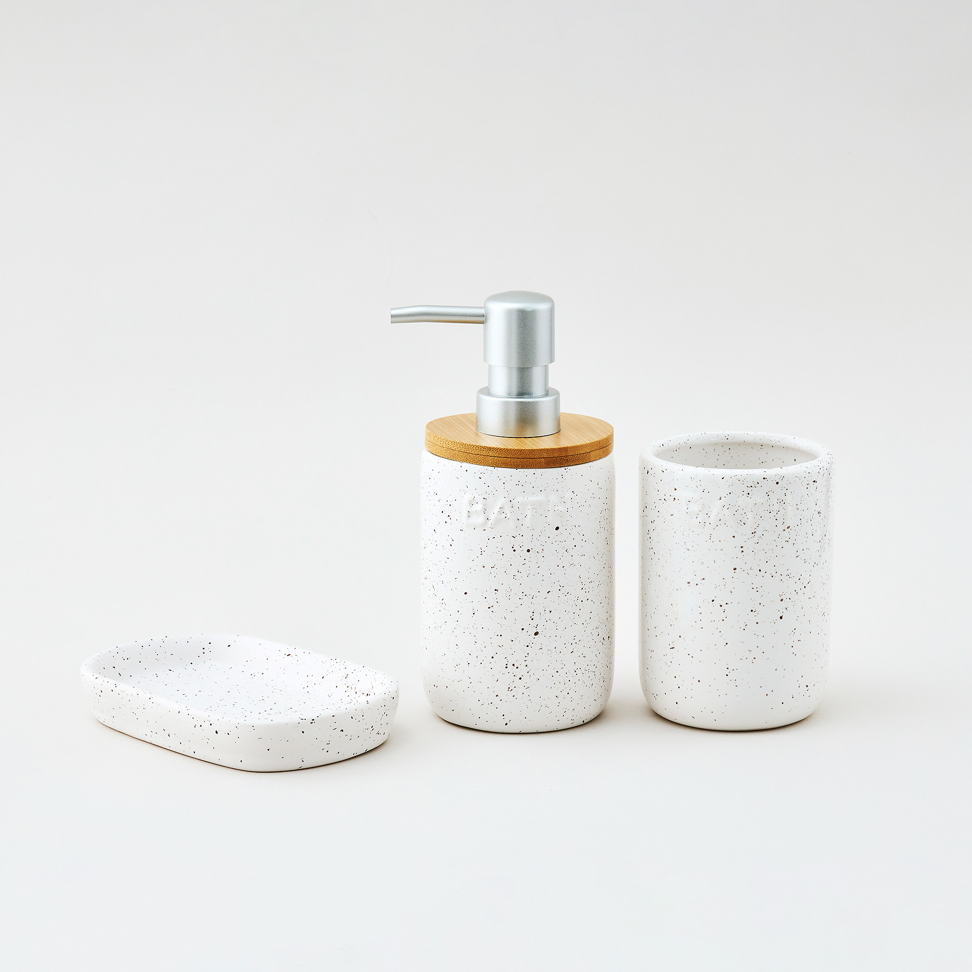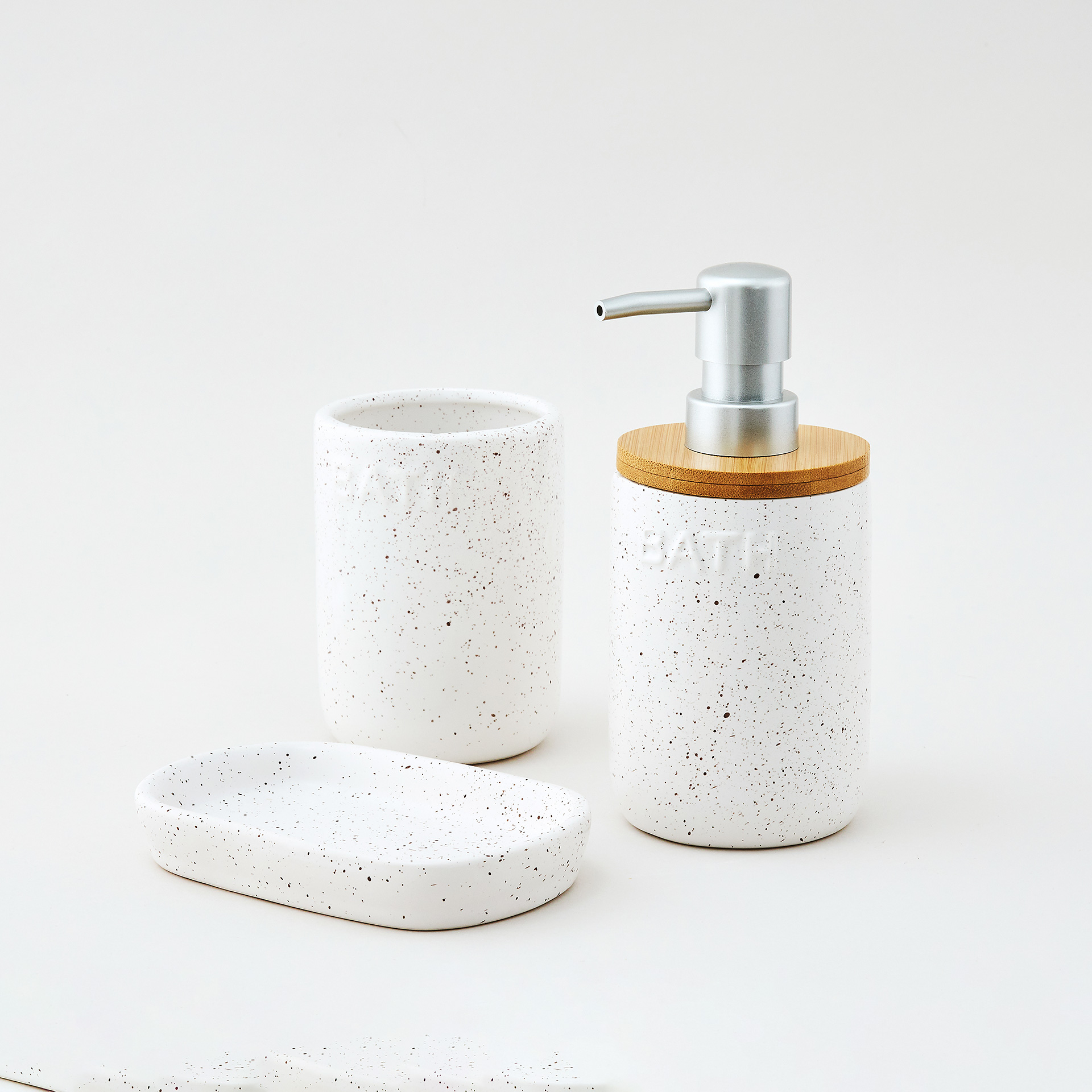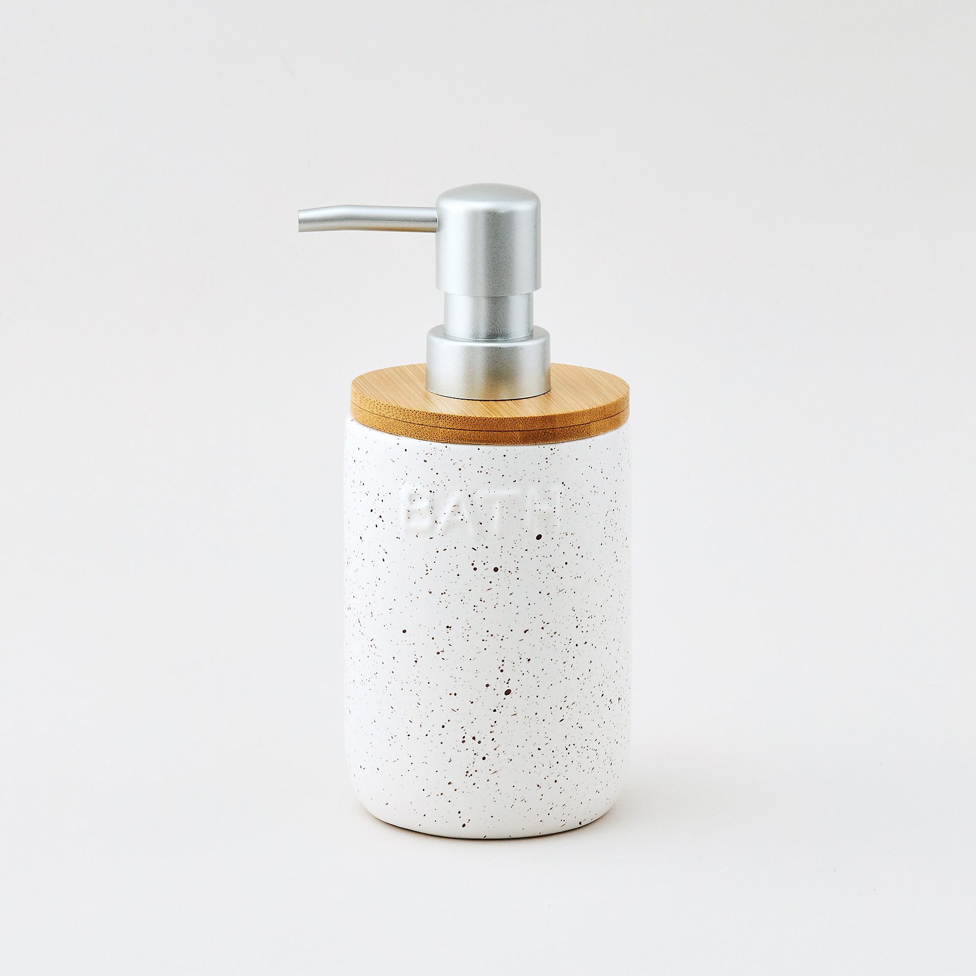 Стильный интерьерный диспенсер для жидкого мыла выполнен из качественной керамики, в молочном цвете с темно-бежевым крапом и декорирован натуральным бамбуком. Сочетание цветов и фактур напоминает о чудесном отпуске-ретрите , именно поэтому коллекция получила свое название - Каникулы на Бали. Декорирование дома предметами, напоминающими об отпуске - один из ярких трендов. Дозатор дополнен классической серебряной помпой с матовым покрытием. Конструкция помпы обеспечивает комфортное нажатие. Поверхность диспенсера не только визуально красива, но и приятна на ощупь. Благодаря гладкой поверхности уход за изделием прост и не займет много времени.
