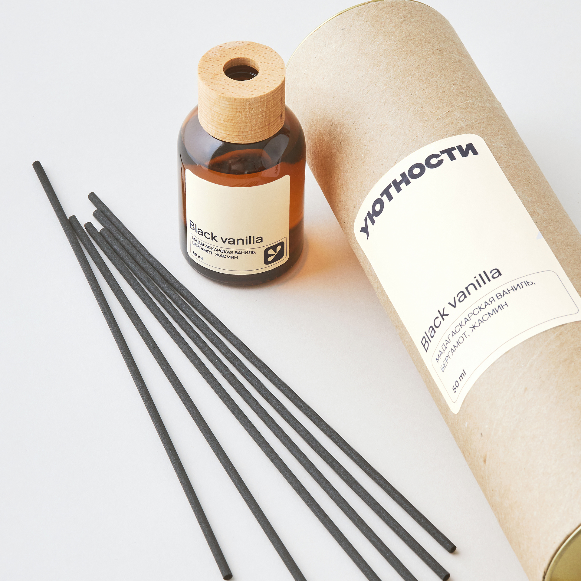 Диффузоры от «Уютности» изготовлены из премиальных французских отдушек с высоким содержанием ароматических компонентов, эффективны для помещений площадью до 40 м². Набор упакован в стильный прочный картонный тубус.